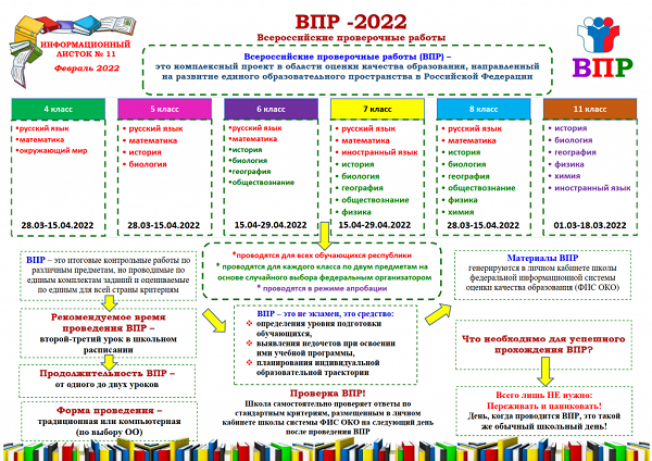 Все ВПР в 10 и 11 классах должны пройти в период с 1 по 25 марта. При этом отметим, что в 2023 году школы сами решают, будут ли ученики старших классов участвовать в проверочных работах. Прежде всего Всероссийские проверочные работы в 11 классе предназначены для тех, кто не выбрал утвержденные для ВПР предметы для ЕГЭ.